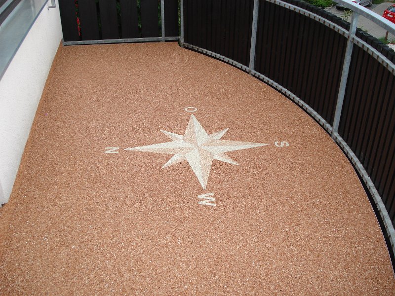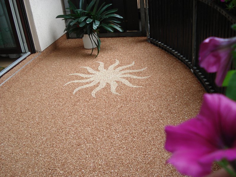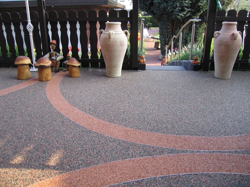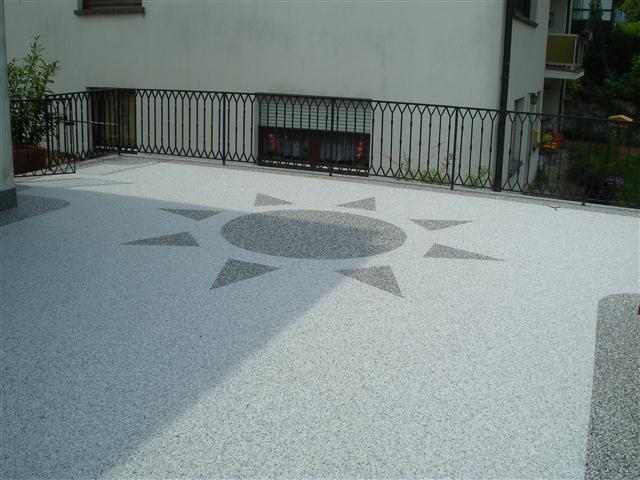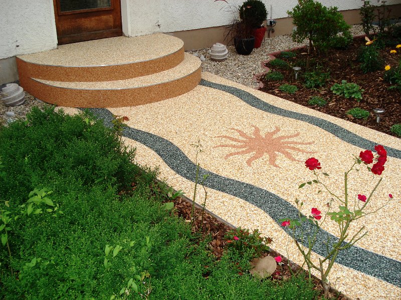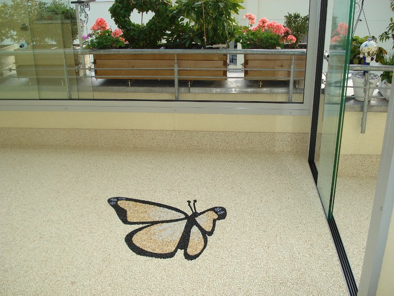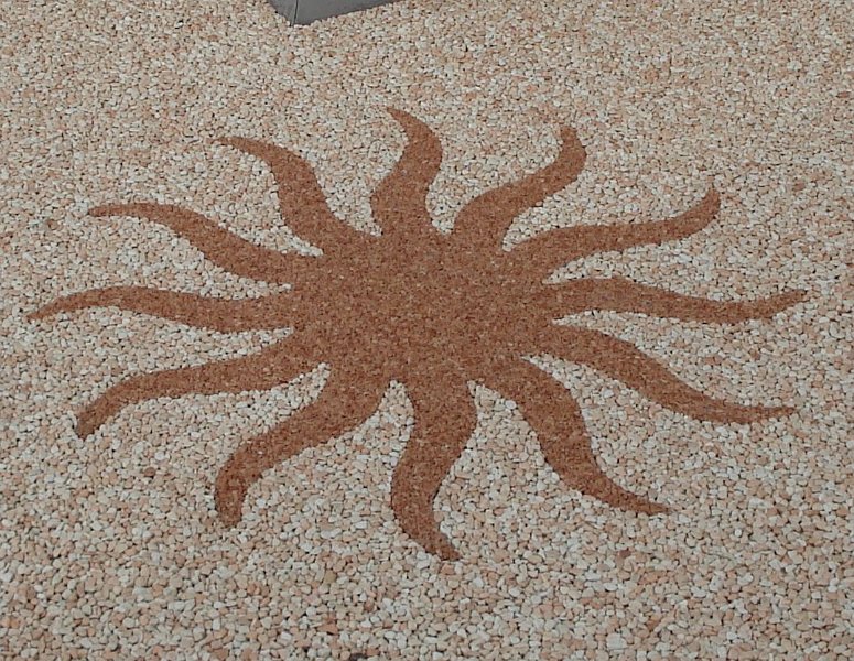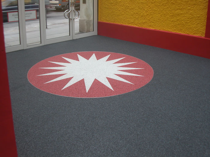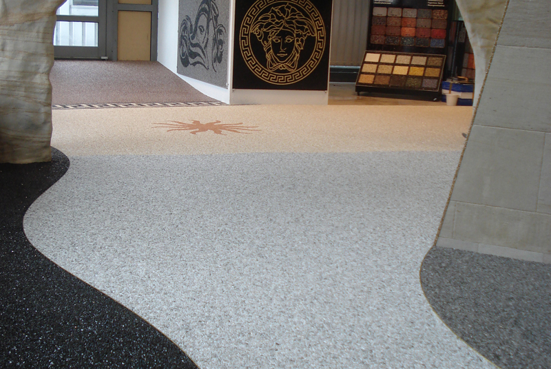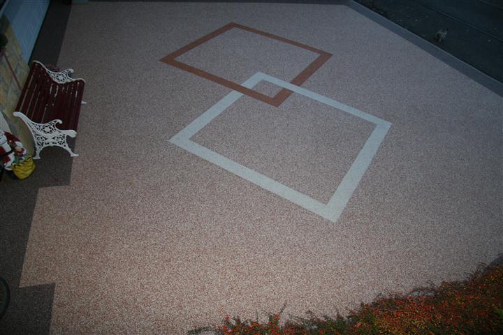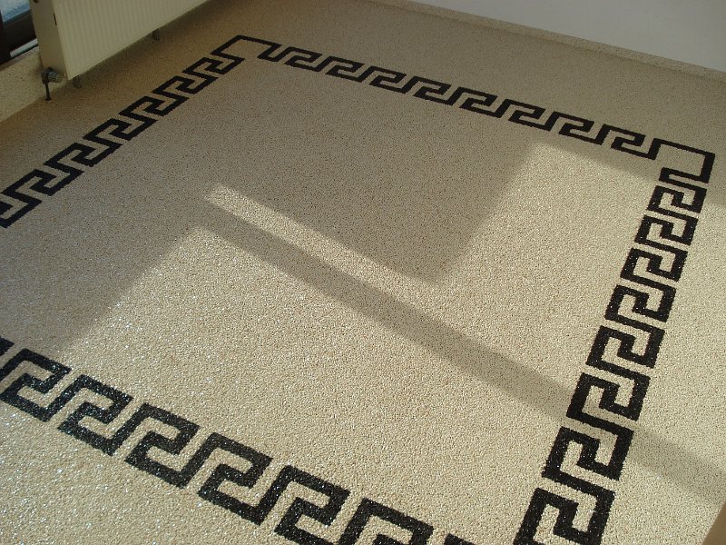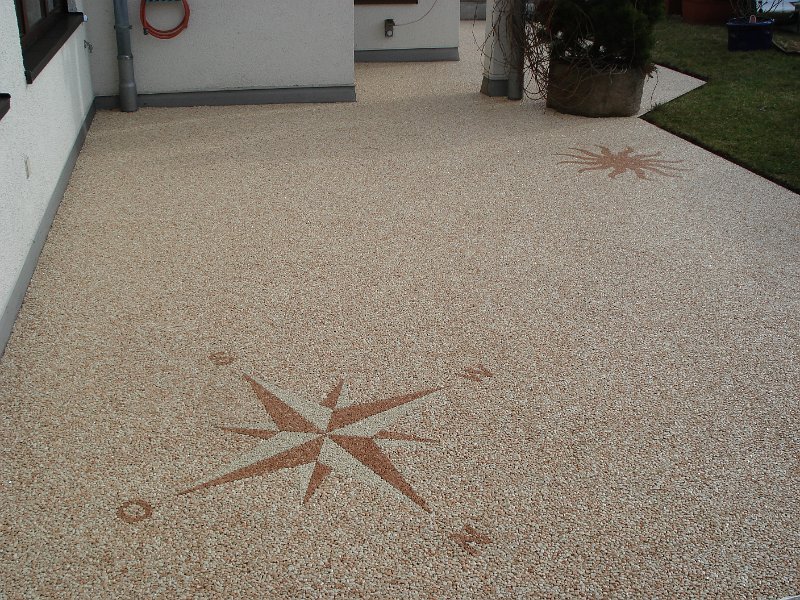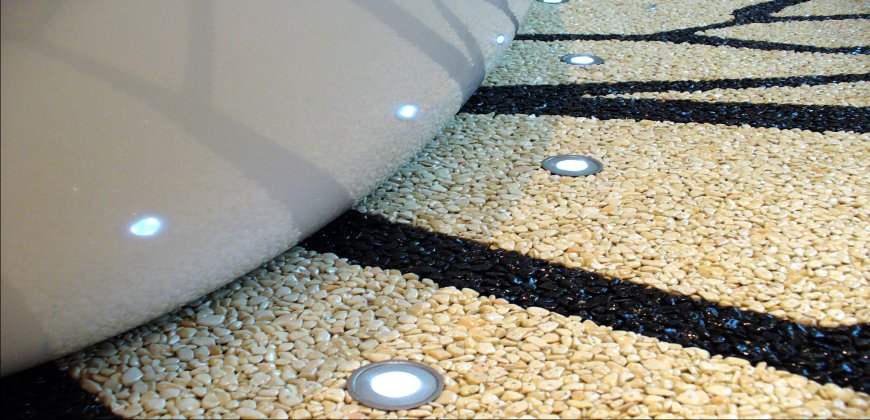 Doğal taşların renk çeşitliliği ve özel reçinelerle şekillendirilebilme özelliği sayesinde, zemin üzerinde istenilen logo, yazı veya geometrik desen kolaylıkla uygulanabilir. Bu yöntem;