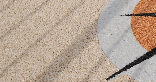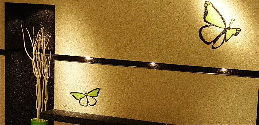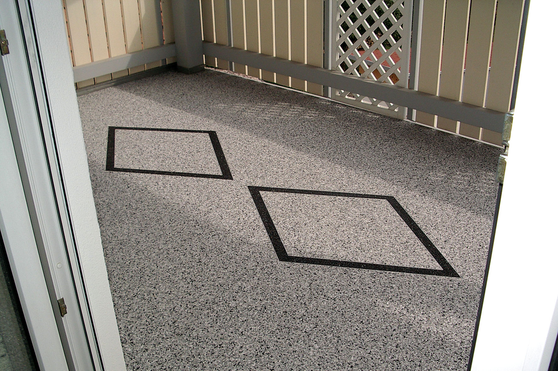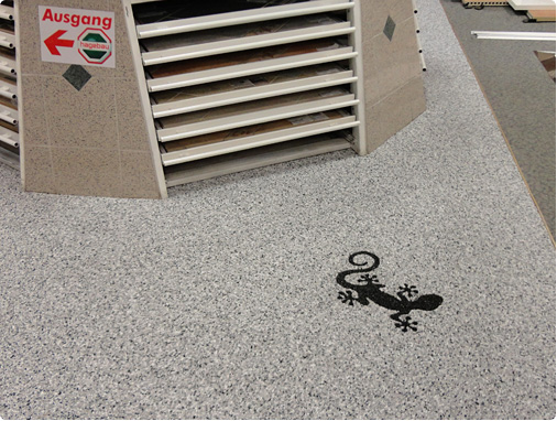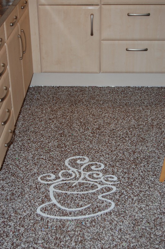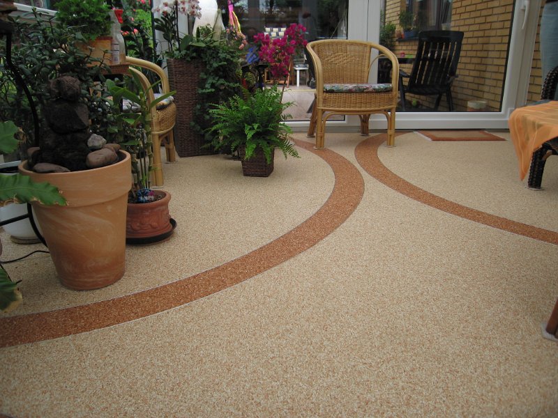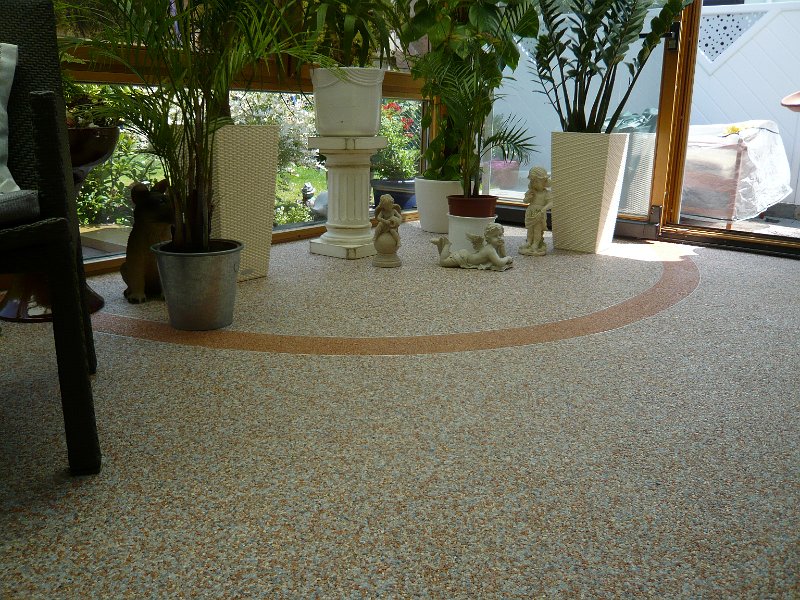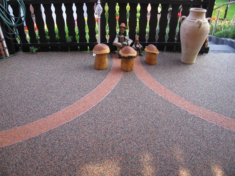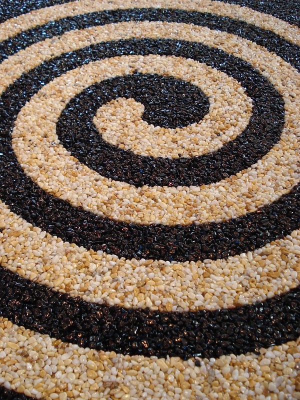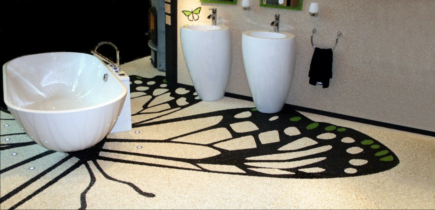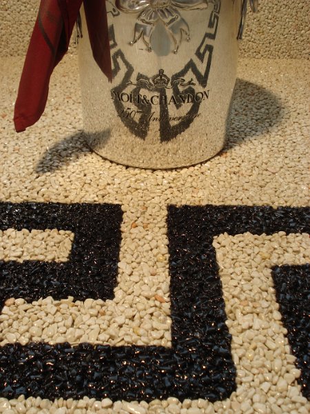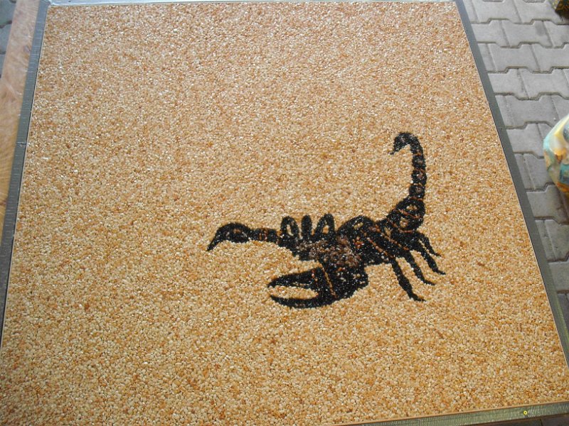 Doğal taşların renk çeşitliliği ve özel reçinelerle şekillendirilebilme özelliği sayesinde, zemin üzerinde istenilen logo, yazı veya geometrik desen kolaylıkla uygulanabilir. Bu yöntem;